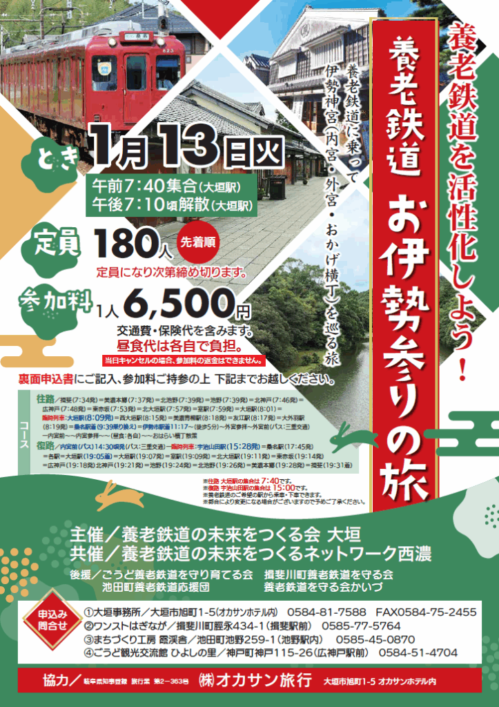 養老鉄道に乗って伊勢神宮(内宮・外宮)やおかげ横丁を巡る日帰りの旅に出かけましょう。