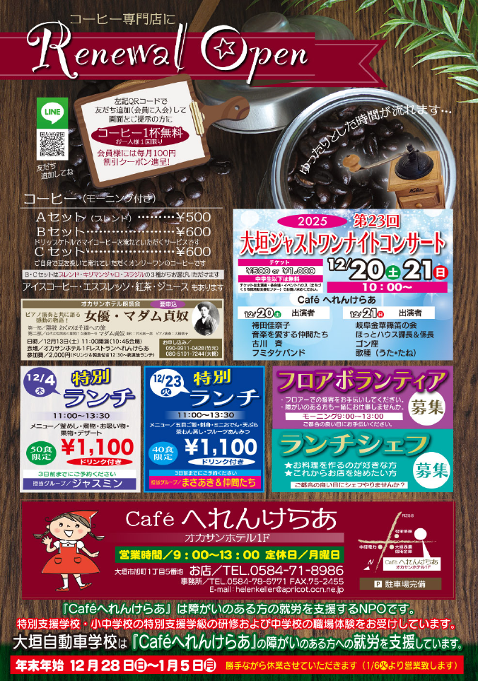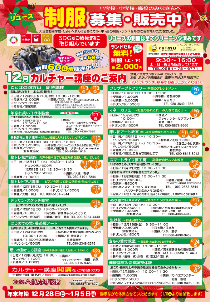 『Caféへれんけらあ』より12月のお知らせです。